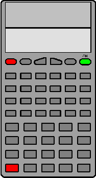 WARNING: Invoking the tests described below will result in the clearing of data memory, program memory, and mode settings. Further, invoking this test using the alternative method for the fx-7400G, described below, requires partial disassembly and possible modifications to the calculator, which could result in permanent damage. See disclaimer before dissassembly or modification. These two casio calculators have built-in internal, display, and keyboard tests. With the calculator off, the test mode is activated by pressing and holding the two keys highlighted in red on the illustration at the right, then pressing the AC/ON key. A menu of test options is presented. Each test is activated by pressing the number for the appropriate test. For the display test, press the EXE key (in blue on the illustration at the right) to step through each display pattern until until the test option menu is again displayed. The keyboard test requires the pressing of each key in order, generally from the upper-left, to the lower-right; the calculator prompts you to press the appropriate key. The RAM and ROM tests will display "- OK -" when the test finishes successfully; the EXE key must be pressed to return to the test option menu. The self test is exited by selecting option zero. With the fx-7400G you must additionally answer "yes" (by pressing F1) to the "reset all memories?" prompt (the calculator will eventually lock-up if you answer "no," necessitating a hard reset using the reset button on the back of the calculator). As an interesting note, the fx-7400G has a pair of pads on the circuit board which, when momentarily shorted, will also invoke the self-test mode. With the calculator facing down, and the battery cover removed, the self-test pads are the two D-shaped pads under the grey piece of tape to the left of the back-up battery. The switch above the words "BACK UP" must be pushed up to turn the calculator on before shorting the pads. The switch must be pushed back down before the battery cover is replaced. |