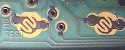 This TEST pad, which is labeled "TEST" and looks like a regular key contact pad, is located on the back of the PCB approximately 1.6 cm above above the RESET button/pad. Accessing it requires removal of the back metal battery compartment cover, then removal of the back body of the calculator. The back body lifts off after all screws are removed, which also disconnects the batteries from the calculator. |